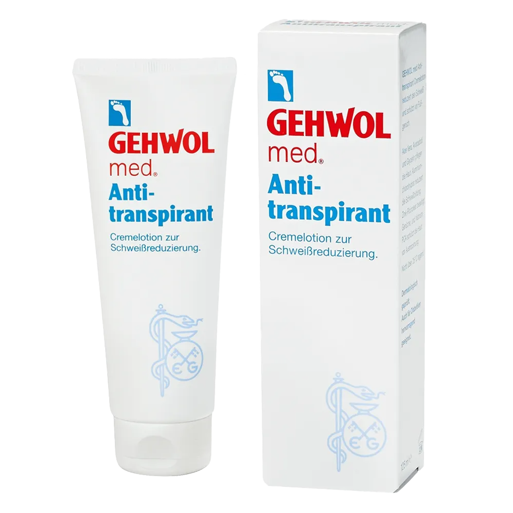 Gehwol Anti-transparent cream lotion ensures drier and odorless feet with daily use. It tackles the cause of sweaty feet by reducing moisture emissions, which prevents the formation of foot odor. This antiperspirant also protects against bacteria that convert perspiration into athlete's foot and itching between the toes. At the same time, it prevents excessive drying of the feet and the formation of cracks.